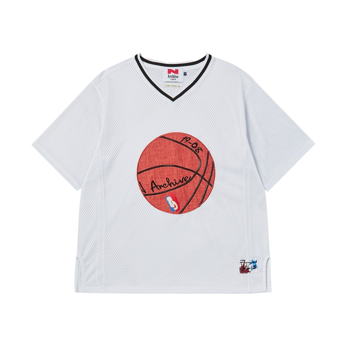 [KREAM 단독] 엔 아카이브 핸드 메이드 아트 피스 바스켓볼 로고 메쉬 저지 티셔츠 화이트