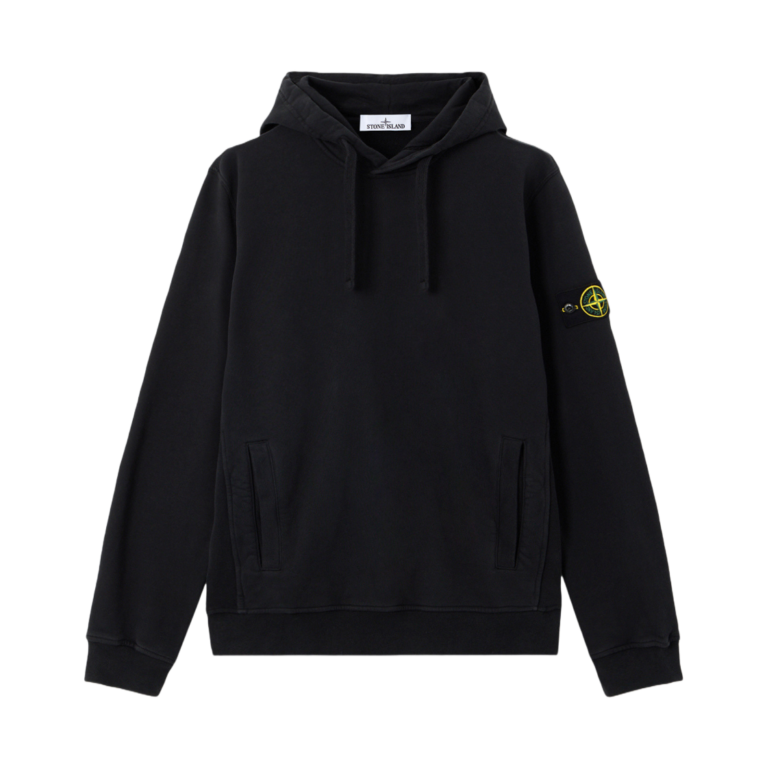 스톤 아일랜드 6100029 브러쉬드 오가닉 코튼 플리스 레귤러 핏 후드 스웨트셔츠 파우치 포켓 블랙 - 25FW