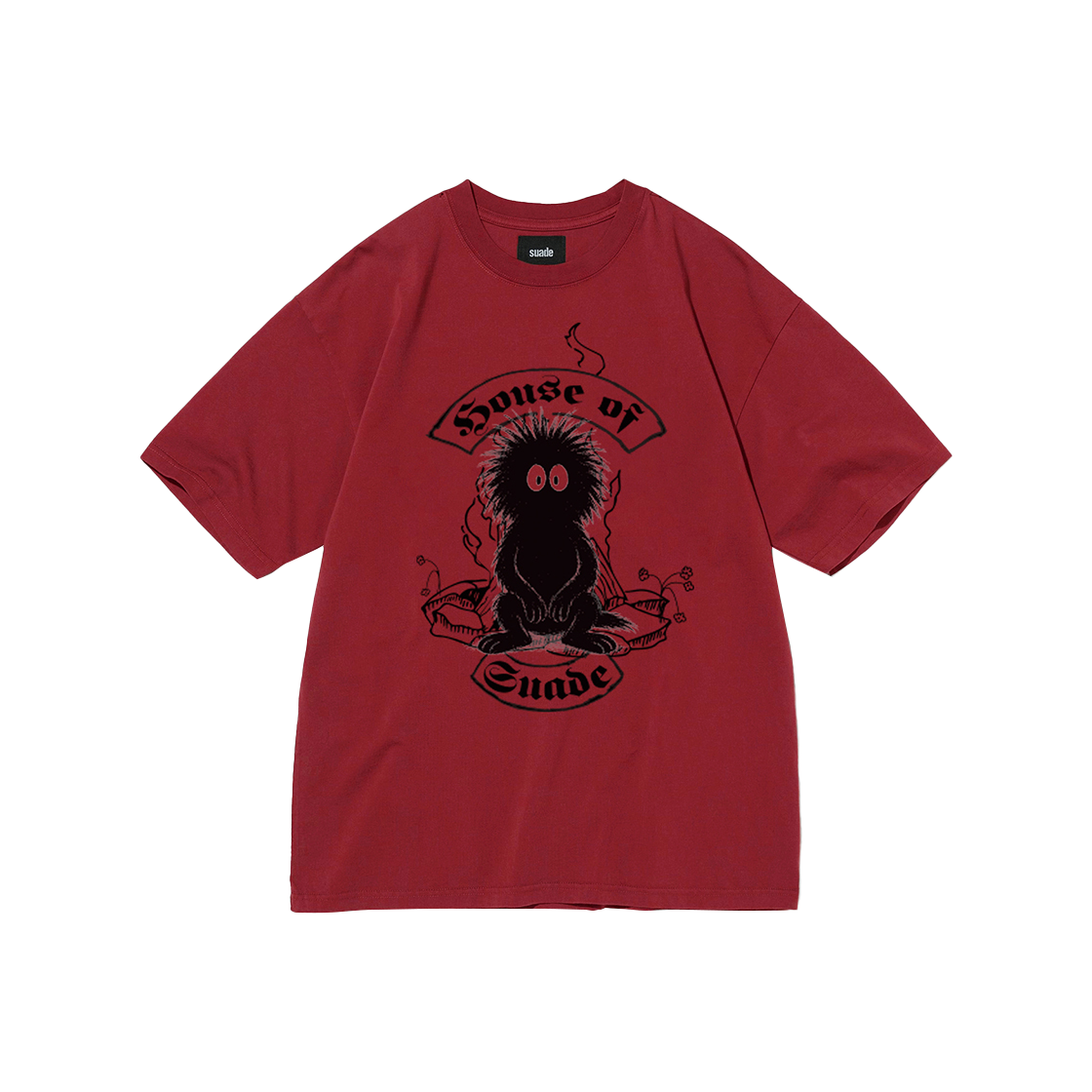 스웨이드 알비노 스컬 크롭 티 레드