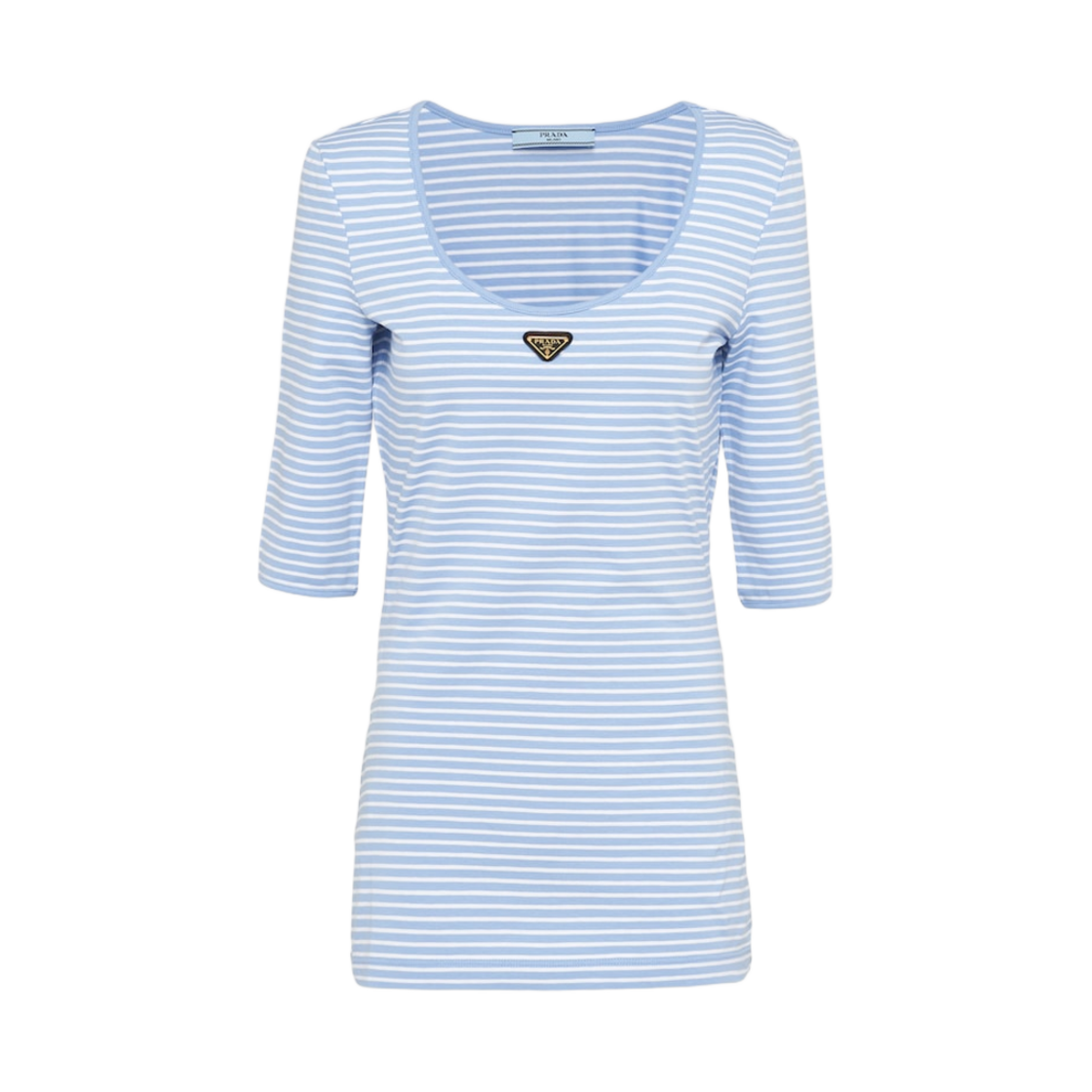 (W) 프라다 스트라이프 저지 탑 스카이 블루 화이트