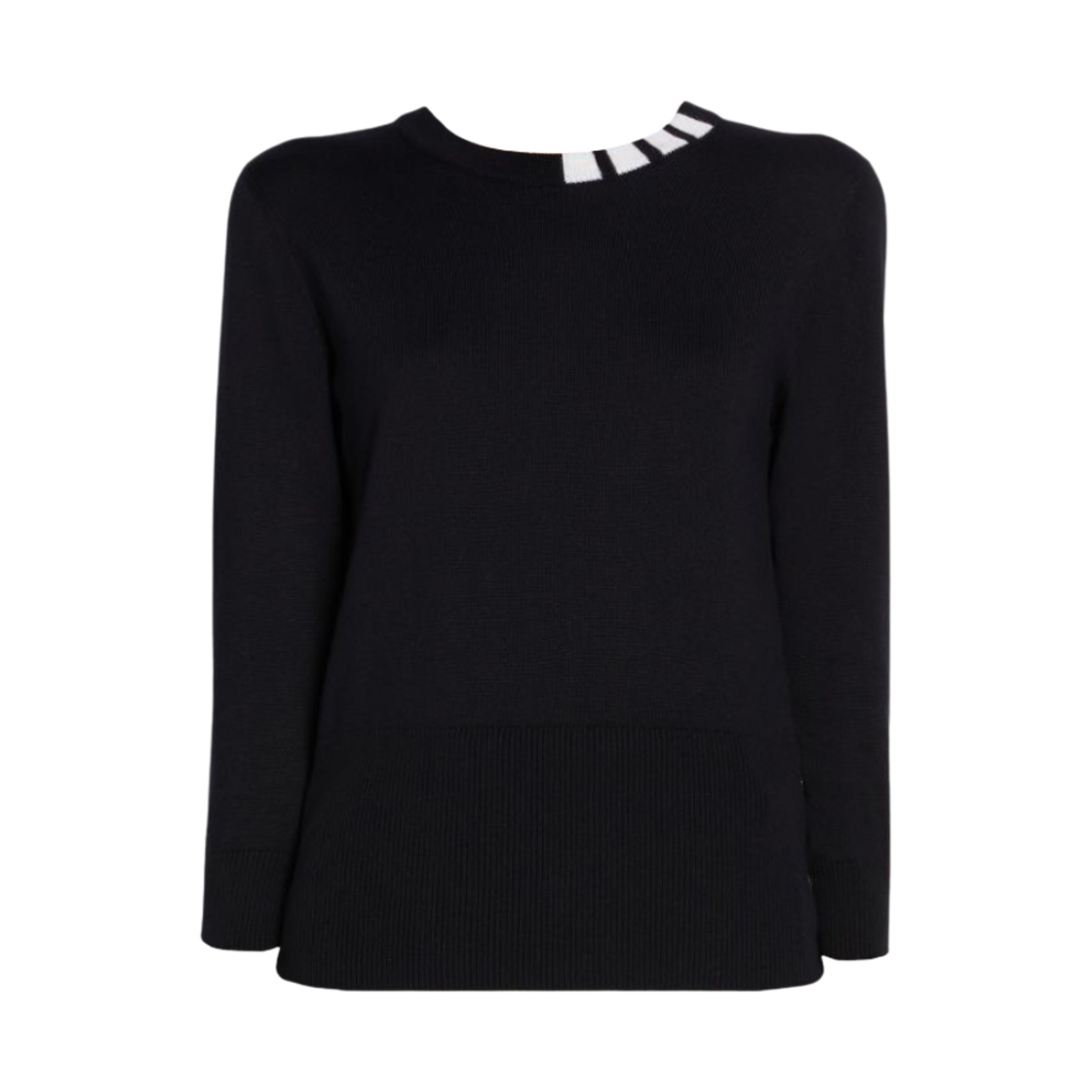 (W) 톰브라운 스트레치 실크 코튼 저지 사선 넥라인 3/4 슬리브 풀오버 네이비